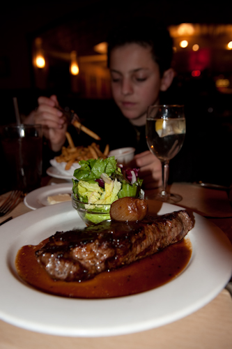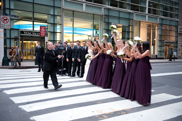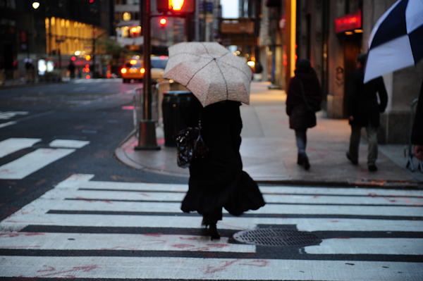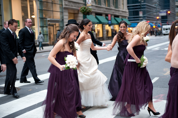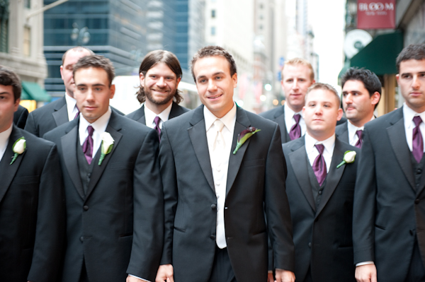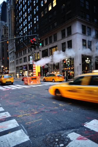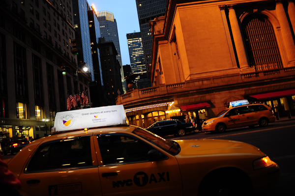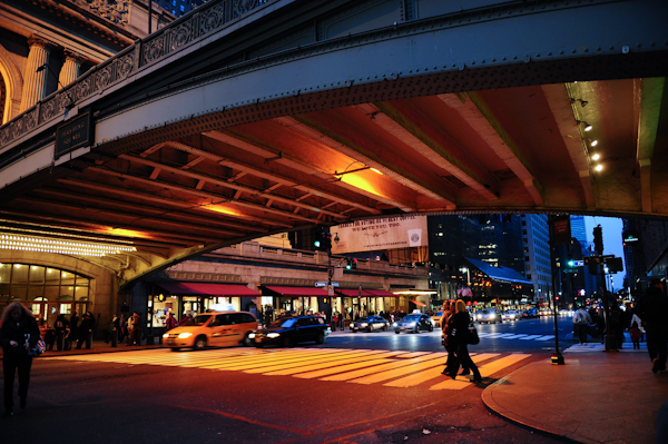 Die Lobby ist wirklich mehr als beeindruckend, aber angesichts der Umstände haben wir dafür erstmal keinen Blick – wir wollen nur einchecken. Keine Wartezeit am Frontdesk, stattdessen gleich die völlig unerwartete Frage: Do you want two single beds? – Yes, that would be really nice .. und so wanderte die für den 20-Dollar-Trick bereitgehaltene Note gleich wieder ganz unauffällig in meine Tasche :). Die Zimmer waren sauber, aber nicht sehr groß – und das Bad war auch nicht das allerneueste, aber das Gesamtpaket stimmte für uns angesichts von Preis und Lage und so beschlossen wir, uns nun aber schnell auf die Socken zu machen – Manhattan wartete ja bereits auf uns. Dass der bislang ausgebliebene, wenn auch angekündigte Regen ausgerechnet einsetzen musste, als wir endlich draußen waren, war ja klar – aber besser so als später, also nochmal hoch und neu einkleiden. Wieder draußen kam mein persönliches Highlight: Fotograf und Filmer in Hektik, da gab es für mich kein Halten mehr – eine Hochzeit!!!!!!! Was beneide ich immer meine amerikanischen „Kollegen“ um die Möglichkeiten, Hochzeitsfotografie zu betreiben in den USA – also schnell ein paar Schnappschüsse abgegriffen *ich steht total auf diese gleich gekleideten Bridesmaids* und dann waren sie auch schon wieder weg. Was nicht mehr wegging war der Regen, der sollte uns ja auch am nächsten Tag noch begleiten. Wir sind dann noch bis zur 5th Av. gegangen, haben vergeblich nach einer US-Telefonkarte gesucht und haben es einfach nur genossen, wieder da zu sein. Und dann wurde es aber auch schon Zeit zum Essen, was ja bekanntermaßen an der 5th Avenue und den Seitenstraßen nicht so der Hit ist. Wir sind dann gleich gegenüber der Central Station im Pershing Square gelandet – worauf ich so lange gewartet habe sollte sich nun auch endlich auf meinem Teller wiederfinden: Low Carb New York Strip mit grünem Salat – vorbei die Zeiten von 100 gr Hähnchen oder Fisch, es darf wieder gegessen werden – ein Wasser Chardonnay rundet den ersten Urlaubsabend stilvoll ab. Nach einem kurzen Blick in die Central Station (wirklich beeindruckend) gehen wir zurück ins Hotel – mein Sohn konnte einfach nicht mehr und so lagen wir um halb 9 im Bett – ich habe mich dann noch bis kurz nach 10 wachhalten können und dachte, so meinen Jetlag überlisten zu können – falsch: Halb 2 war ich wach, und zwar hellwach. Klimaanlage hatten wir nämlich ausgeschaltet, dafür muss wohl die Heizung angesprungen sein – die Vorhänge standen ca. 1 Meter vom Fenster ab *g* und wir hatten ungefähr 36°C im Zimmer – SCHOCK! Zum Glück konnte ich ein Fenster öffnen, die Heizung im Dunkeln irgendwie abstellen und dann lag ich erstmal noch 2 Stunden im Bett, irgendwann bin ich dann zum Hörbuch eingeschlafen und vor halb 8 nicht mehr aufgewacht – Jetlag doch noch besiegt :)
