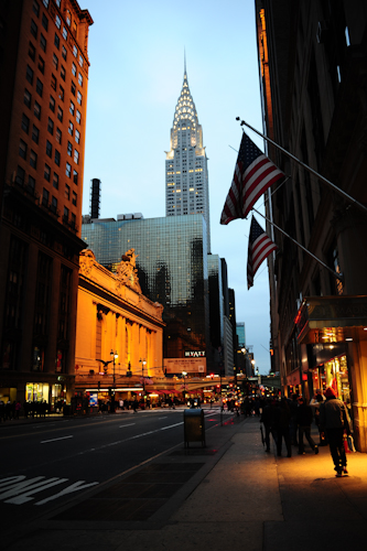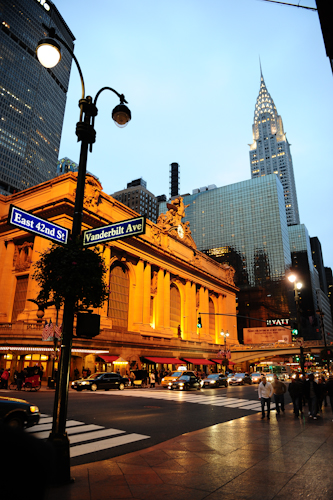 Auch wenn die Fahrt nach New York diesmal nicht so lustig war wie beim letzten Mal mit Joe, so war sie doch immerhin auch um die Hälfte günstiger. Für alle die es interessiert: Es gibt eine Flughafen-City-Flat 45 $ plus Tax and Tip! Und die Fahrt durch den Tunnel kostet nochmal 5 Dollar. Die Anreise über die Queensboro-Bridge war um einiges spektakulärer und ich bin froh, dass ich beim ersten Besuch 2008 auf diesem Weg in die Stadt gefahren bin. Irgendwie war diesmal alles schneller und weniger aufregend – und ehe wir uns versahen waren wir schon da: The Roosevelt-Hotel! Traditionshaus aus dem Jahr 1924 mit grandioser Lobby, Schauplatz zahlreicher Kinofilme (aktuelle Dreharbeiten: Wall Street 2 mit Michael Douglas und Shia Le Boef), Ecke 45. Straße und Madison Avenue, nur einen Block weit entfernt von der Grand Central Station. Wir verlassen also unser Taxi und nehmen unser Gepäck … trotz Personals (die doch angeblich so übereifrig im Abnehmen von Koffern sein sollen) bleiben wir auf unseren gepackten Sachen sitzen. Das mit dem hilflosen Blick habe ich offenbar nicht wirklich gut drauf und so schleppen wir unser „heavy weight“ die mit Teppich überzogenen Stufen hoch, was sich als durchaus schwierig erweist – so schwierig, dass sich nun endlich jemand erbarmt und mir zumindest den großen Koffer abnimmt – geht doch :)